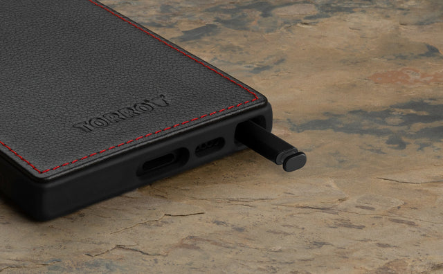 TORRO leather bumper case designed and crafted exclusively for Samsung Galaxy S24 Ultra. The precision fit ensures full, unrestricted access to the screen, camera, S Pen, buttons and charging port.