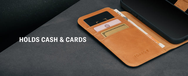 The TORRO leather wallet case with kickstand is designed and crafted exclusively for the iPhone 17 Pro Max. The precision fit ensures full, unrestricted access to the screen, camera, buttons and charging port.